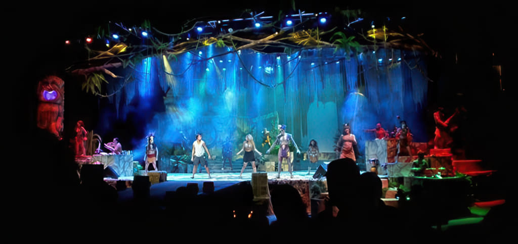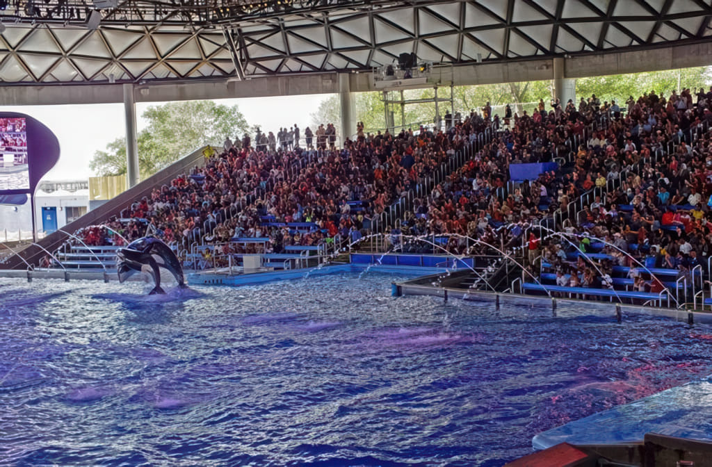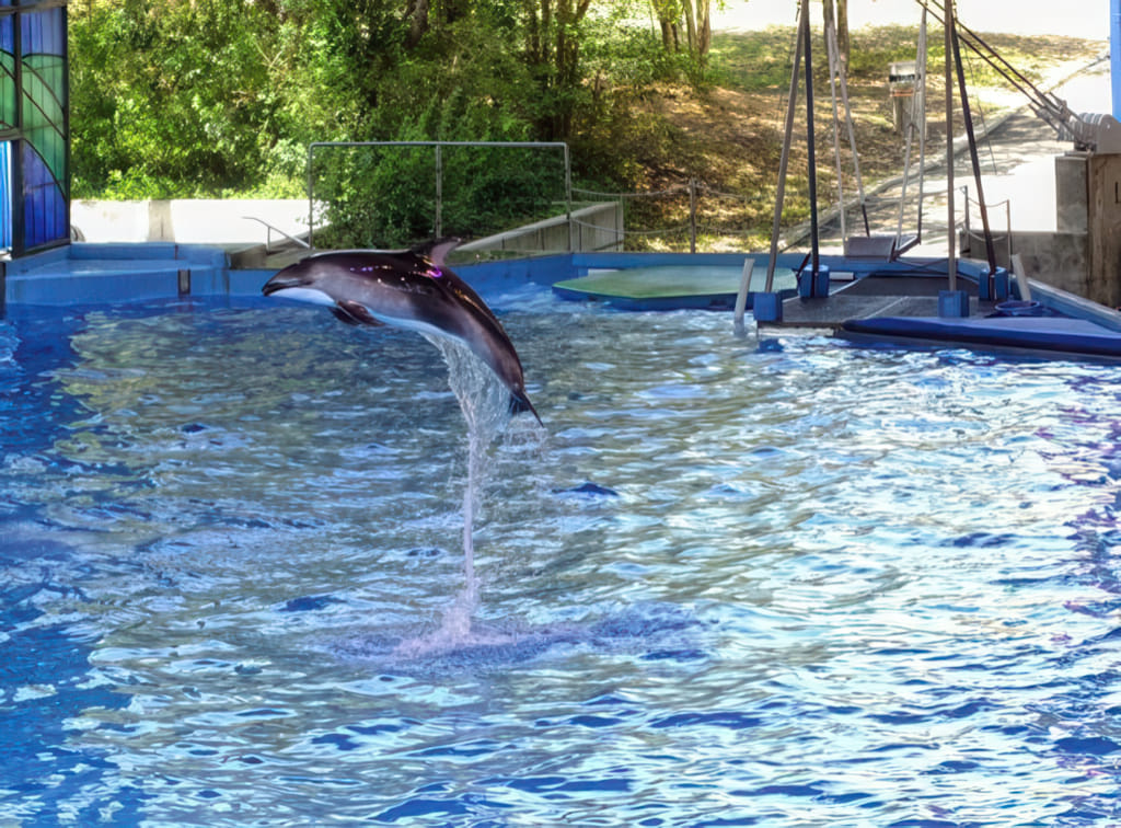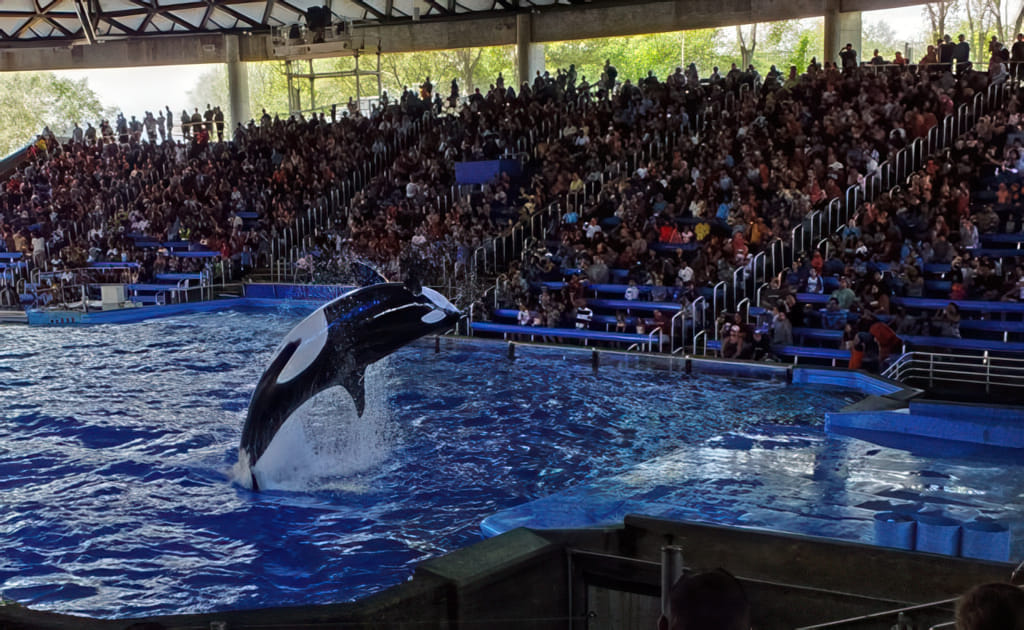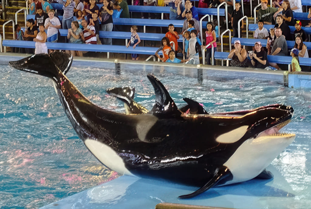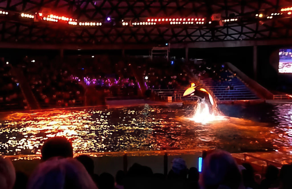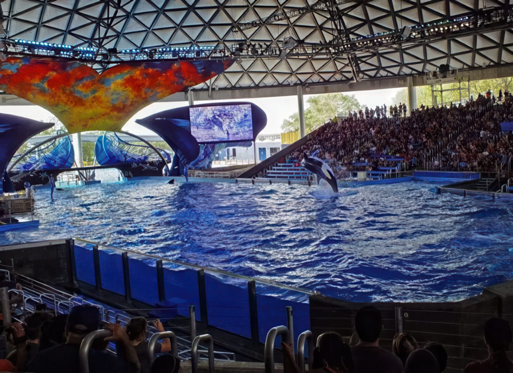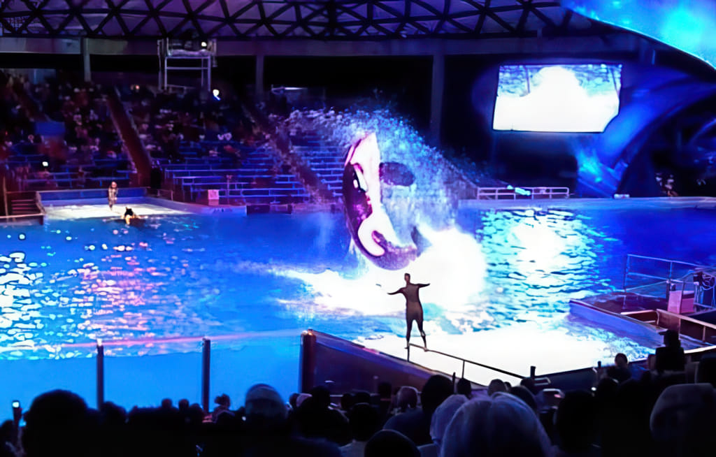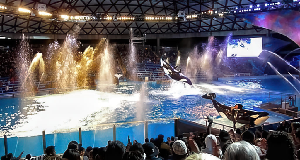 Bei den Tieren kommen Delphine und Belugawale vor (da dürfen die Trainer auch mitschwimmen) und Papageien fliegen frei.