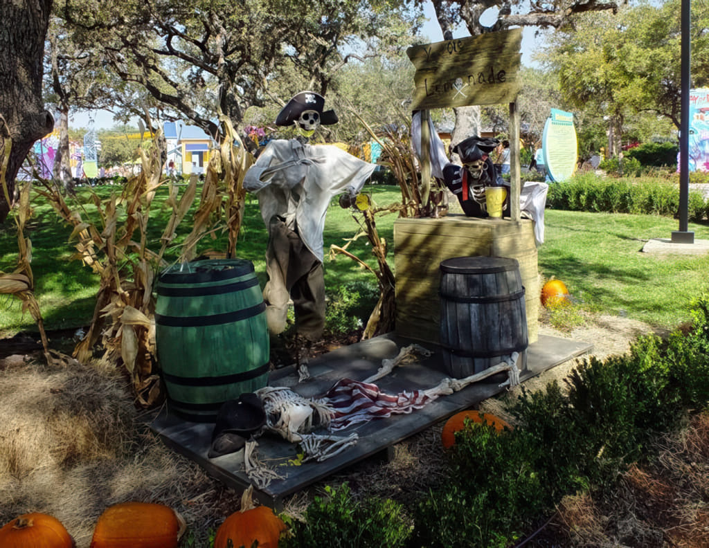 Beim Parkbesuch konnte man nicht übersehen, daß Halloween vor der Türe stand. Genau an unserem Abflugtag war Halloween. Ein Vergnügungspark macht aus Halloween glatt zwei Monate. Wir waren ja nur eine gute Woche vorher dort. Daher sah man genug Dekorationen:
