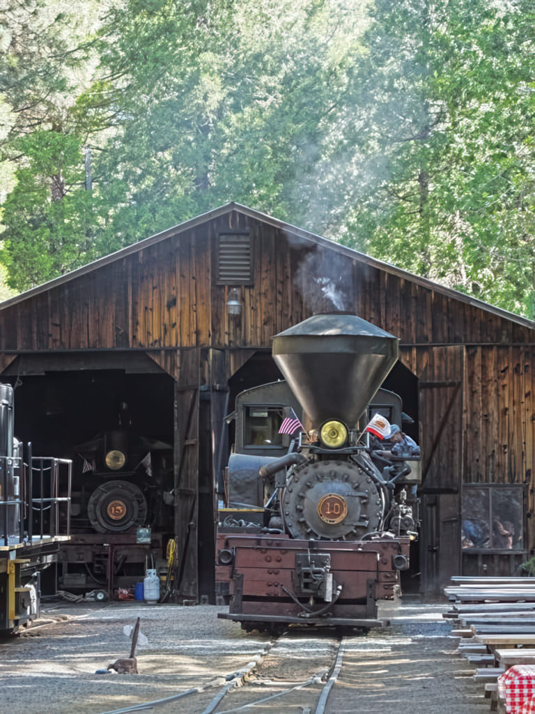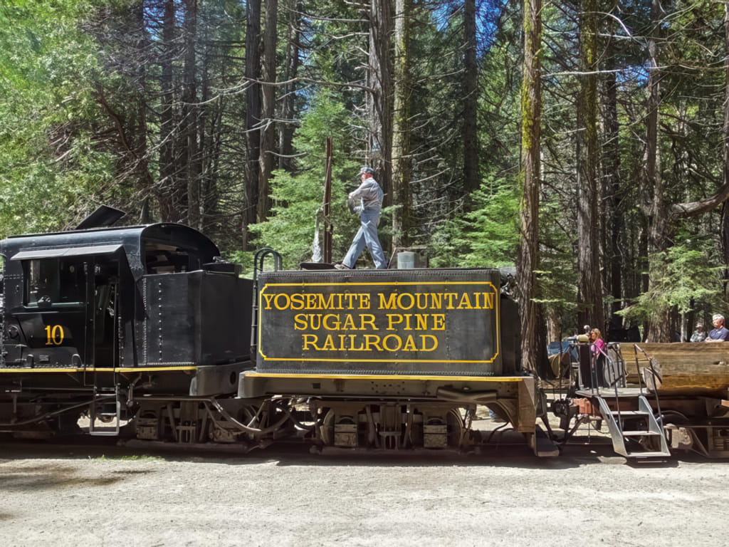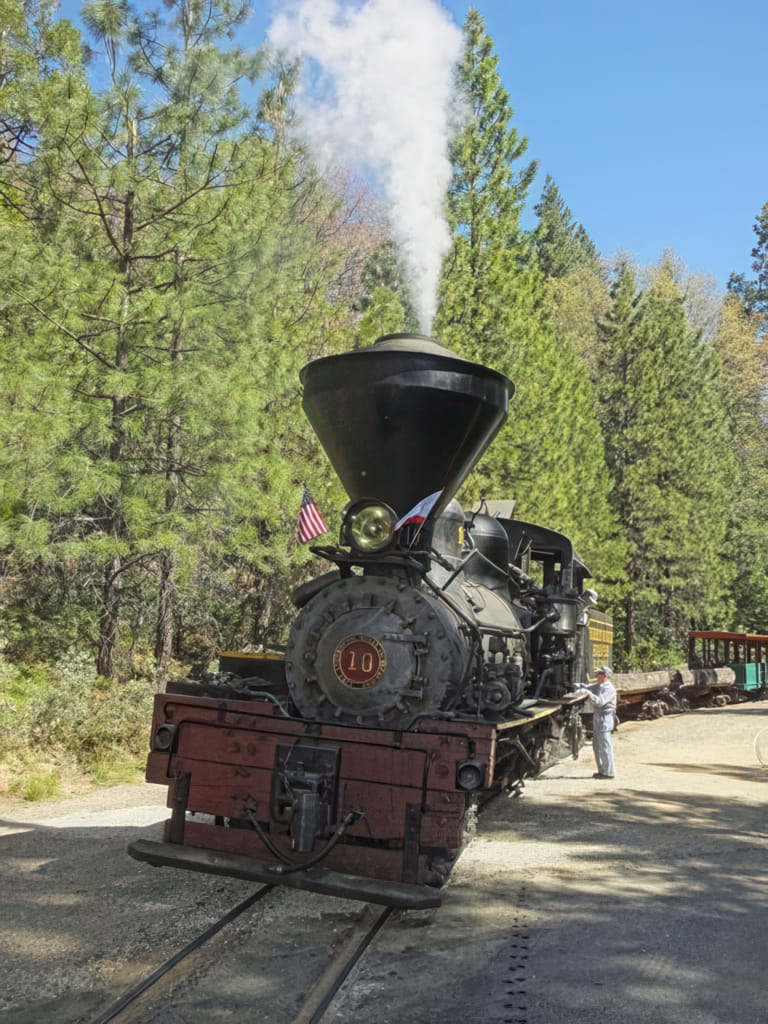 Auf dem Weg zum nahen NP. kamen wir an der berühmten Sugar Pine Railroad vorbei. Um ein Foto von der Lok zu bekommen sind wir hingefahren. Zuerst sahen wir aber den voll süßen Schienenbus. Der fährt auch zwei mal am Tag eine Runde: