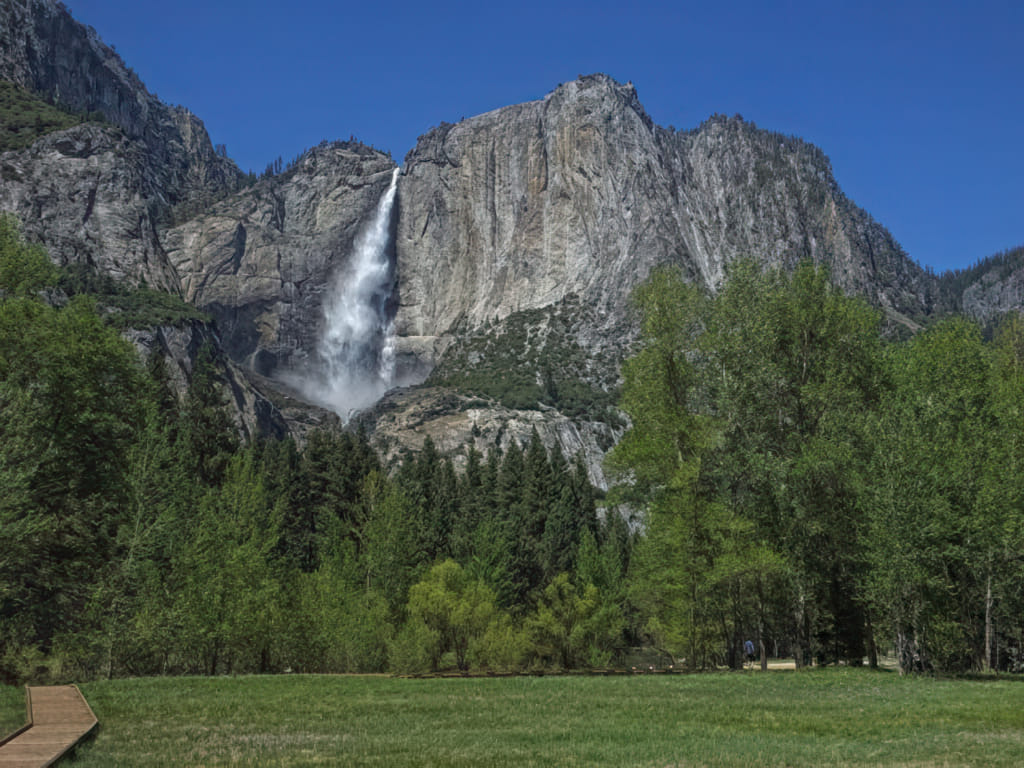 Besonders gespannt war ich auf die frühlingshaften Wasserfälle. Yosemite ist eigentlich für die Wasserfälle bekannt, nur im Herbst sind sie halt schon dünn bis weg. Und gleich vorweg: Enttäuscht wurde ich nicht: