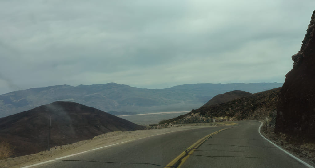 Nach längerer Fahrt war Death Valley in Sicht. Die Wolken leider auch wieder: