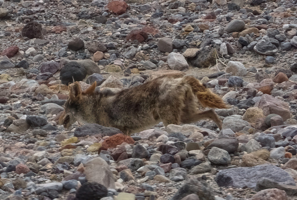 Auf der Weiterfahrt ist uns ein Kojote über den Weg gelaufen. Er hat uns absolut ignoriert und ist trotz aller Bemühungen nicht langsamer geworden. Halt ein Foto auf der Flucht: