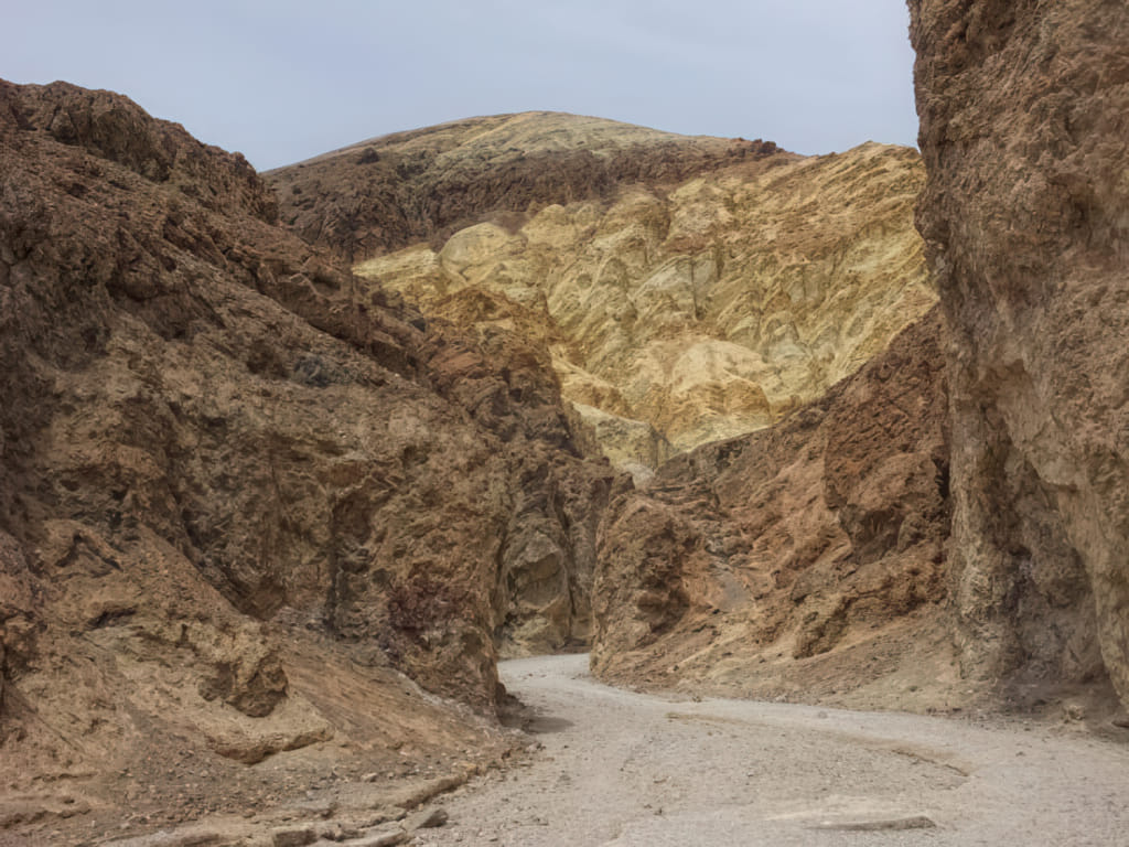 Auf dem Weg zum Artist Drive hat uns die Sonne dann recht endgültig verlassen. Das war der letzte sinnvolle Auftritt im Death Valley: