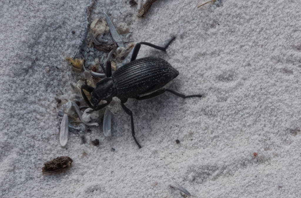Selbst Tiere waren heute unterwegs. Der Käfer hier gilt als das Stinktier der Käfer, denn er verteidigt sich mit Stinksekret wenn es brennzlig wird. Ich bin ihm nicht zu Nahe gekommen, ich habe das Tele arbeiten lassen: