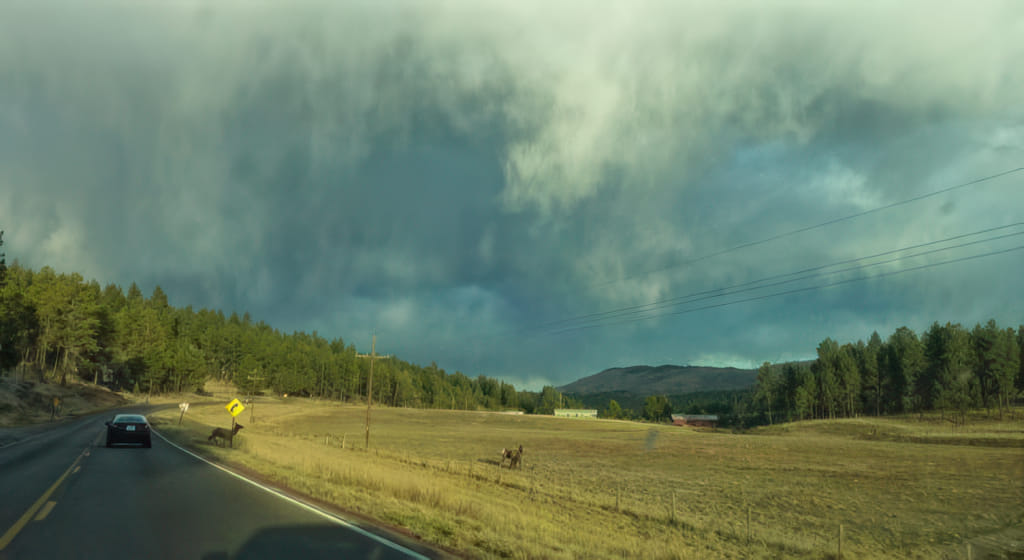 Das mit dem National Forest ist kein leeres Versprechen, da gibt es echt viel Wald oben. Und laut GPS war es ziemlich oben, knappe 2700m hoch…