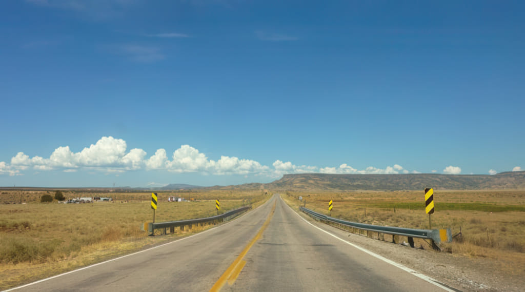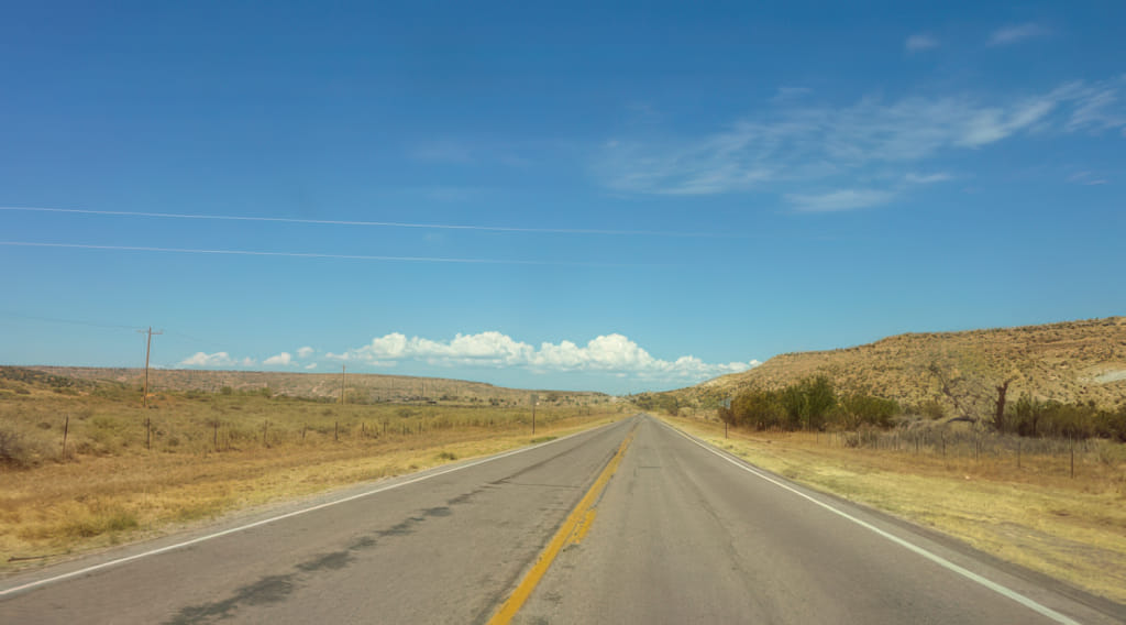 Mit Hilfe des TomToms kamen wir schnell aus der Stadt und nach einigen Meilen des Fahrens, wollten wir ein wenig das Gefühl der Historic Route 66 haben. Also sind wir vom Freeway abgefahren und konnten ganz schnell feststellen, was ‘open range’’ bedeutet: Die Kühe stehen bis zum Fahrbahnrand:
