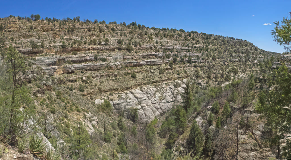 Der Tag schien nach unserer Umplanung ein langer zu werden. Zudem sind wir in der Früh nicht so schnell wie immer in die Gänge gekommen. Aber laut TomTom sollten wir es locker bis zum Sonnenuntergang nach LA schaffen. Darum leisteten wir uns den Luxus, dem Walnut Canyon NM einen Besuch abzustatten. Durch den Jahrespaß kostet so ein Besuch ja nix.