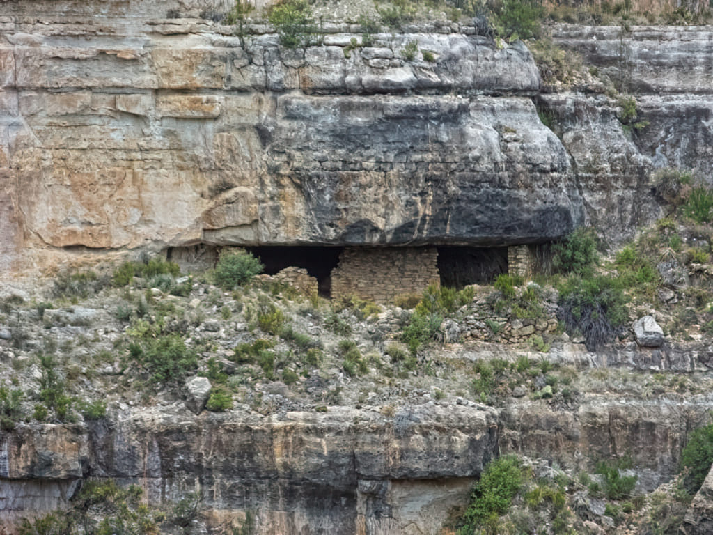 Auf den gegenüberliegenden Hängen sieht man die Wohnhöhlen, die mit Steinen zugemauert wurden, damit man besser wohnen konnte: