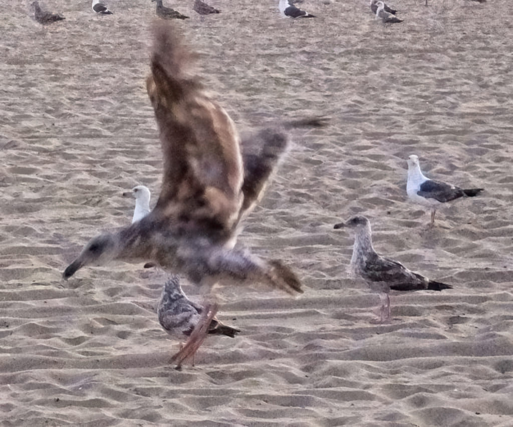 Die Möven sind dort überraschend schreckhaft und wenn man sich zu Fotozwecken annähert, eher ungehalten: