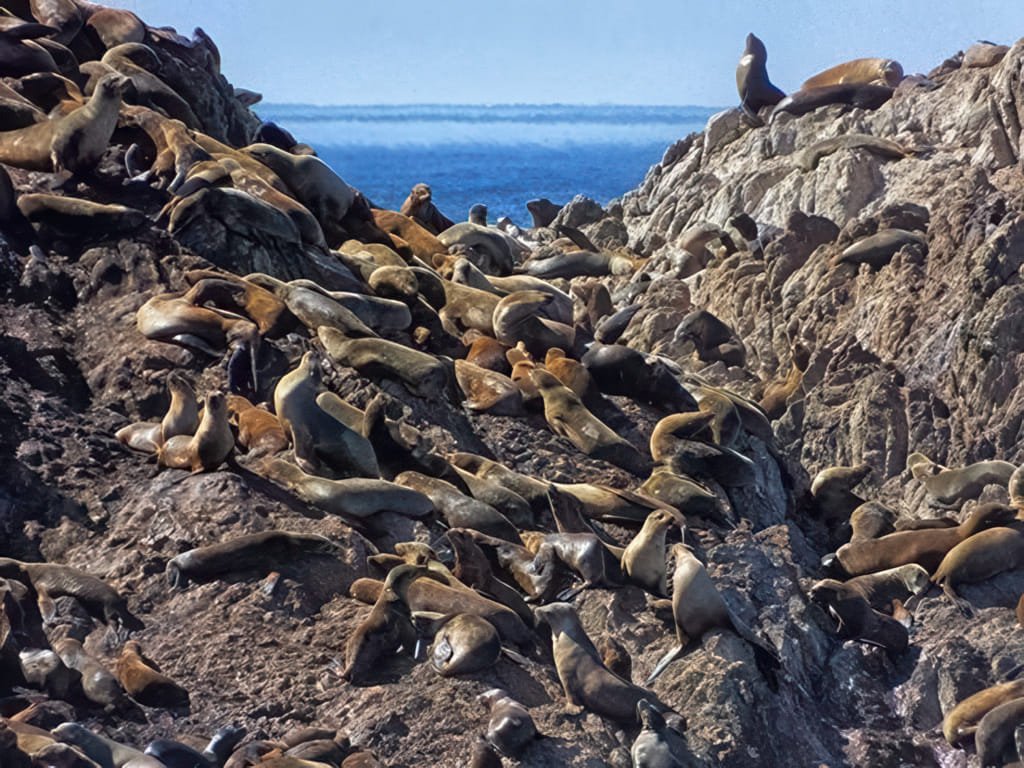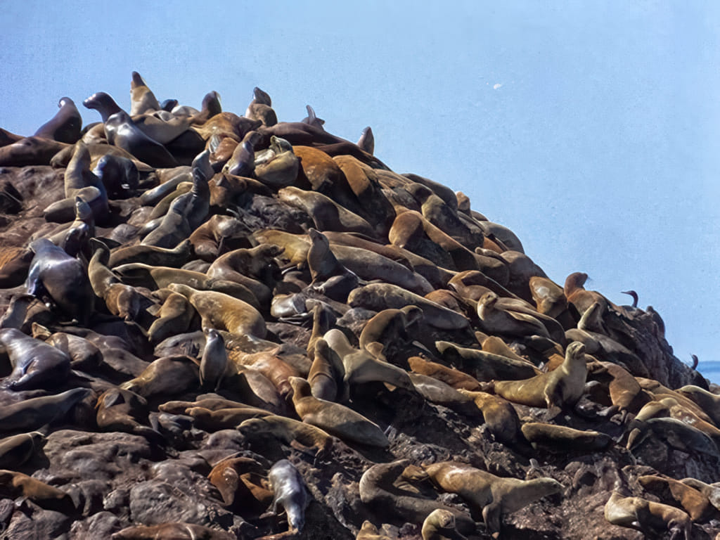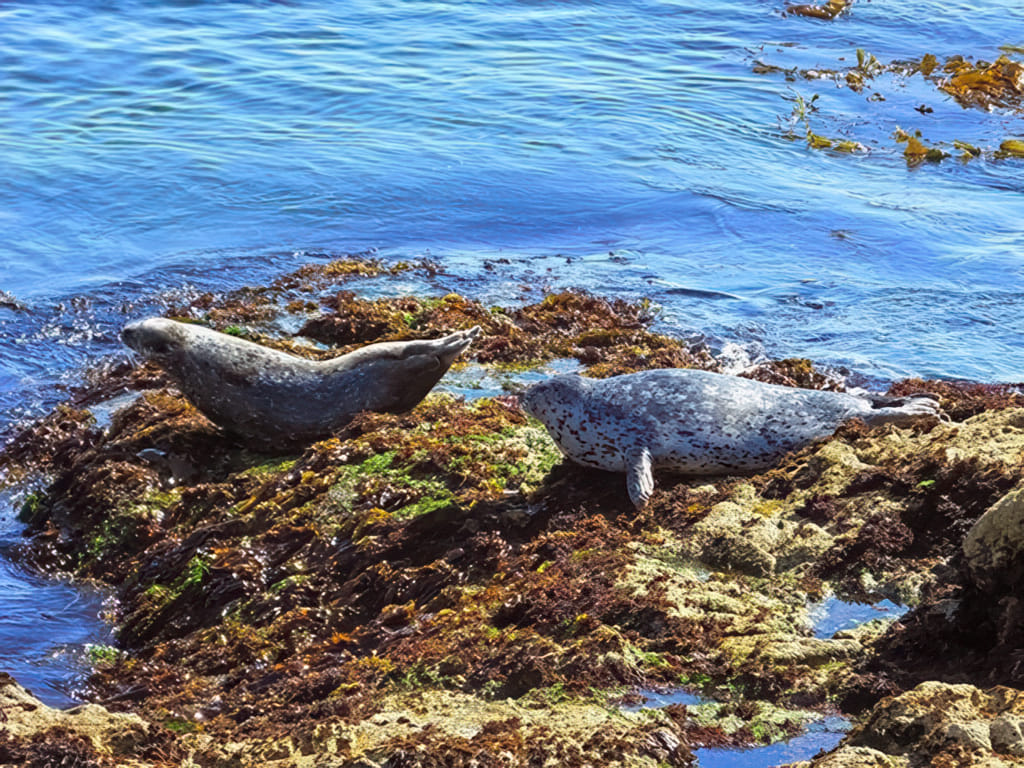 Die Küste wird – der Straße folgend – steiler, die Robben liegen aber trotzdem genüsslich herum. Der Wald rückt jedoch näher ans Wasser: