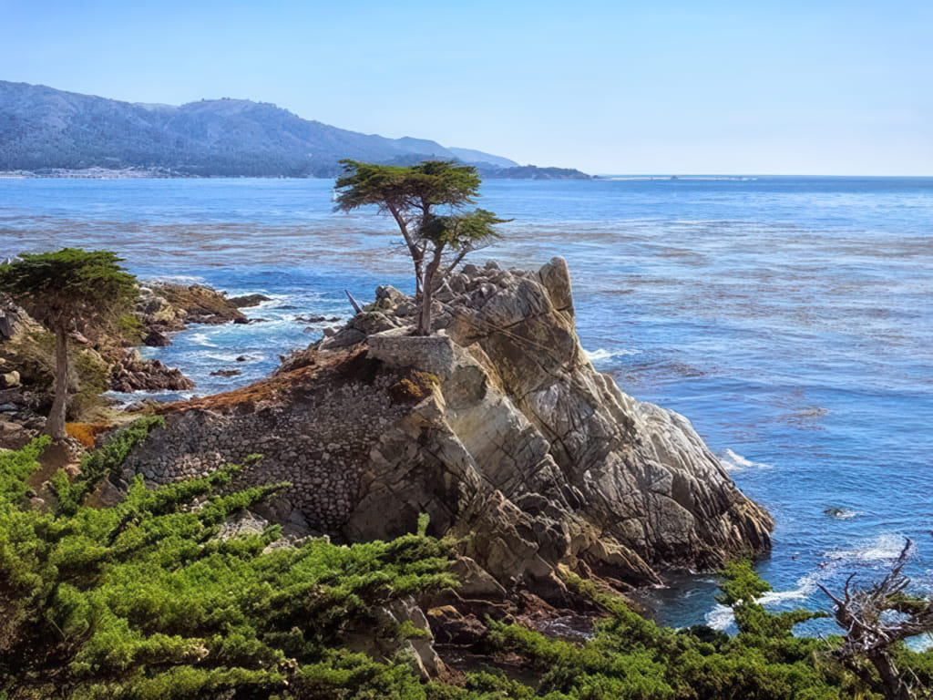 Monterey durchfährt man quasi auf einer Autobahn und ist nur spannend, wenn man in die Cannery Row mit dem Aquarium fährt; das habe ich mir aber gespart. Mein neues Ziel liegt etwas mehr im Süden und nennt sich 17 Mile Drive. In der gated community Pebble Beach haben sie quasi eine Privatstraße zur Erbauung der Touristen ausgeschildert. Man darf natürlich auch knappe 10$ Eintritt zahlen (außer man ist von einem dortigen Bewohner eingeladen worden). Pebble Beach ist wohl fast jedem durch den weltberühmten Golfplatz bekannt. Dort gibt es natürlich auch noch andere exklusive Golfplätze, aber der ist nun einmal der bekannteste.