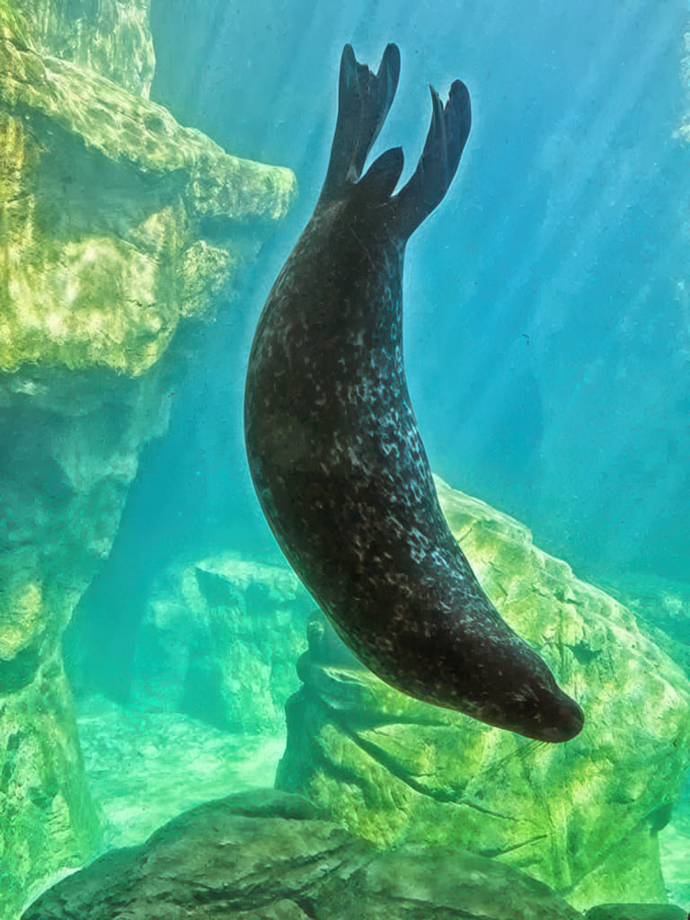 Das Becken für die Seelöwen und Robben ist nicht besonders groß, sie schwimmen aber fröhlich herum: