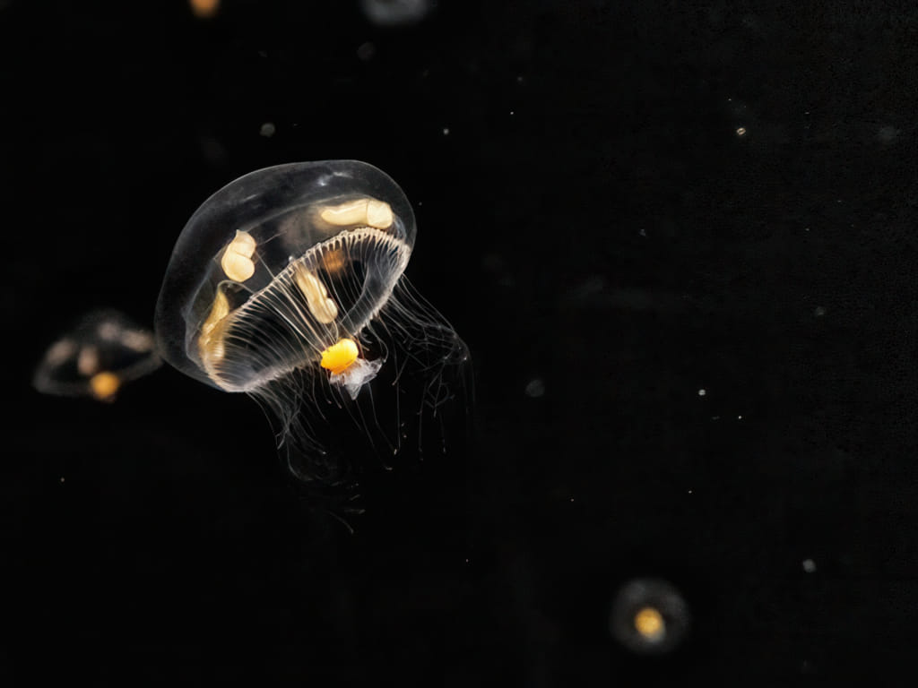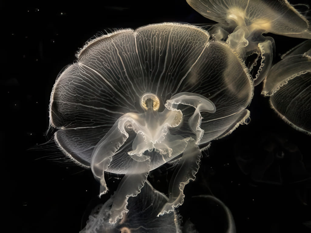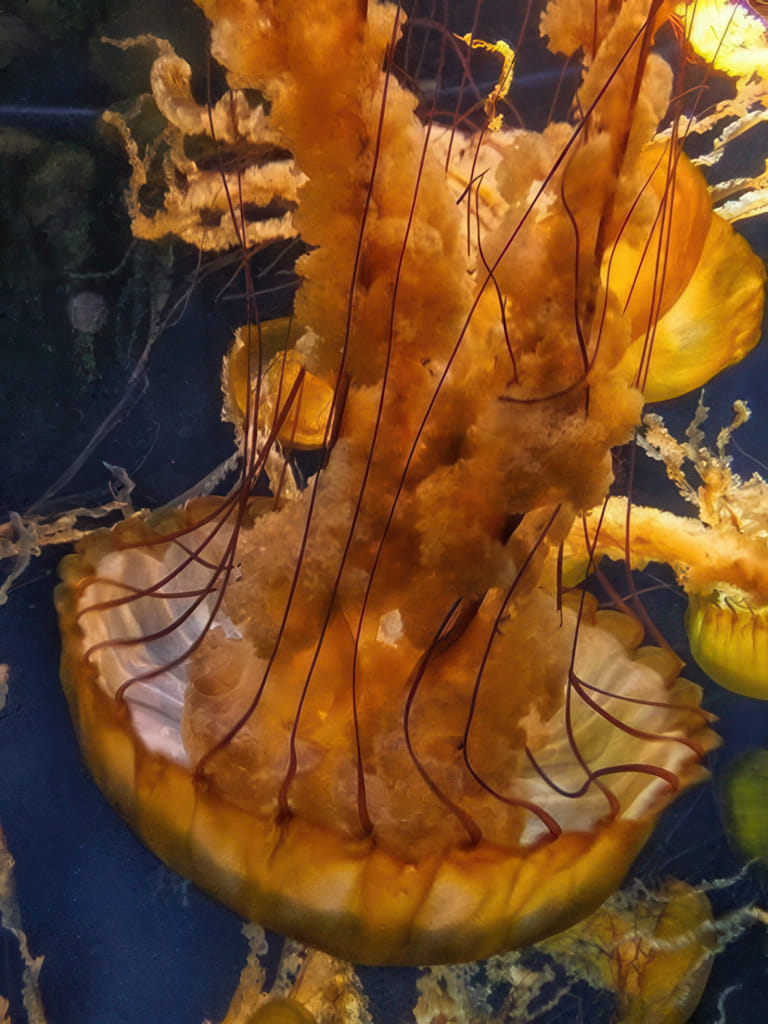 Sehr angetan war ich von den diversen Quallen. Im Wasser brauche ich sie ja sicher nicht, aber zum Anschauen sind sie immer ein Hit. Und wenn dann noch die Kamera mitspielt, kommen sehr hübsche Fotos raus: