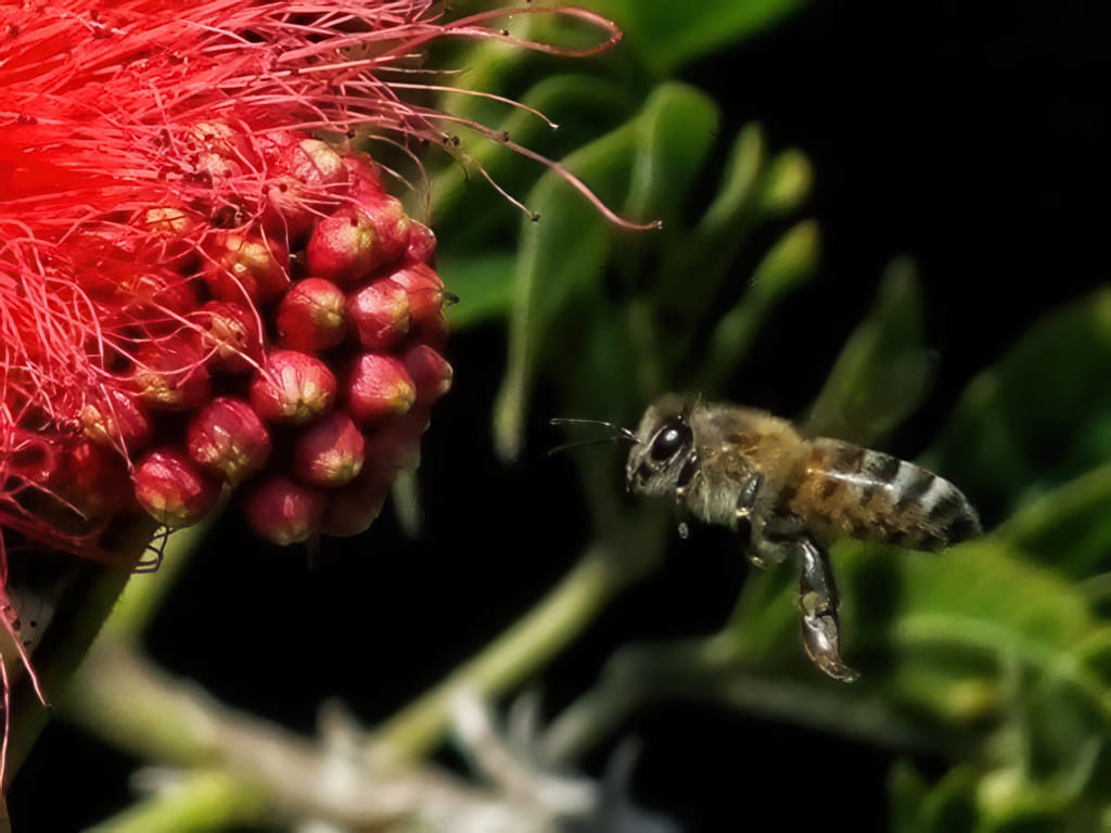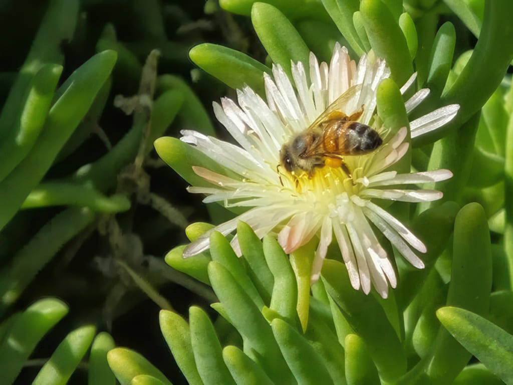 Eidechsen und Bienen rennen und fliegen herum. Da ist was los.