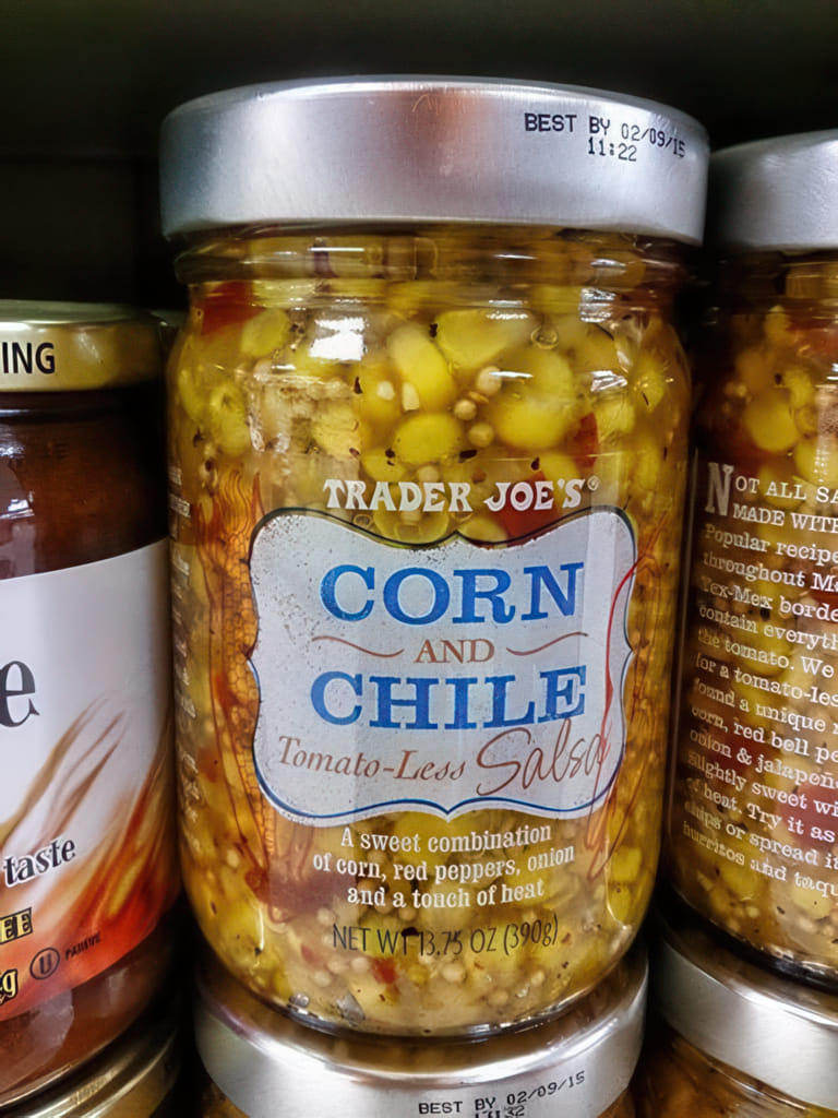 Was macht man, wenn man Salsa essen will, aber keine Tomaten mag? Das Problem ist eigentlich noch schlimmer als das mit den Bananen, denn Salsa ohne Tomaten? Ja doch, das gibt es, zumindest bei Trader Joe’s: