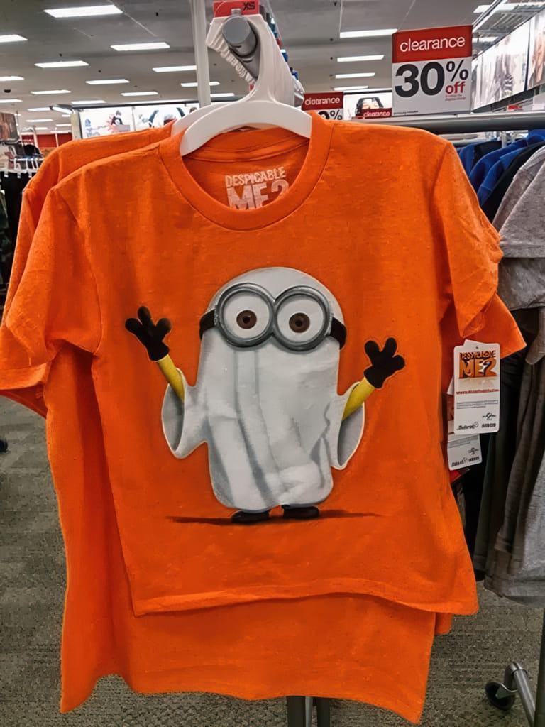 Auf der Suche nach günstigen Hosen bei Target, kam ich durch die Kinderabteilung. Und siehe da, es gibt echt süße T-Shirts für die Kids; der Jahreszeit entsprechend mit Halloween-Motiven. Jeder wird schon die Totenköpfe oder Hexen gesehen haben. Und natürlich Pumpkins in jeder Art, aber heute habe ich etwas Kreativeres gesehen. Man nehme etwas Süßes wie einen Menion (schreibt man die so?) aus ‘Ich, einfach unverbesserlich’ und verhalloweene ihn. Sieht doch knuffig aus, oder?