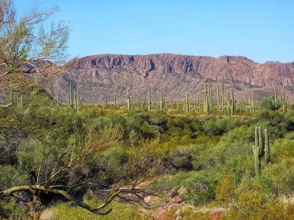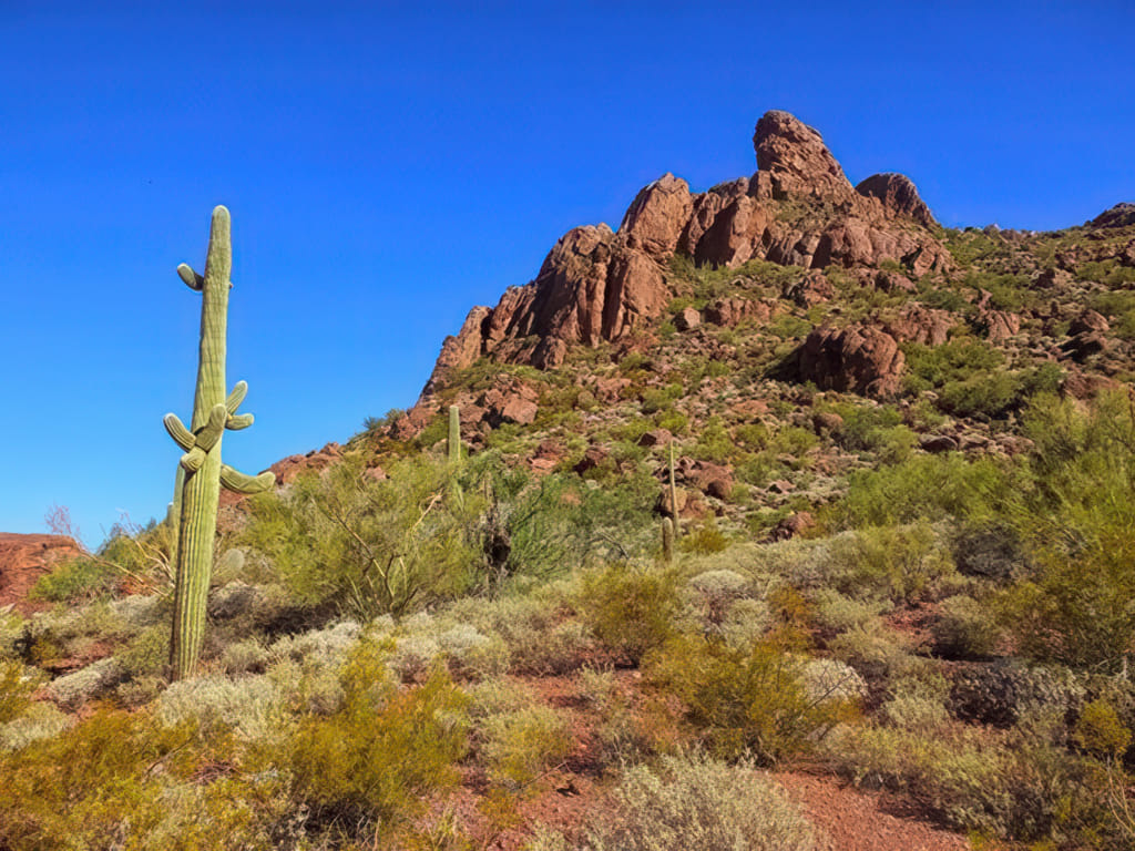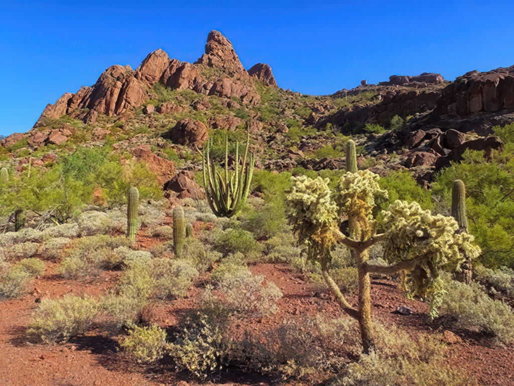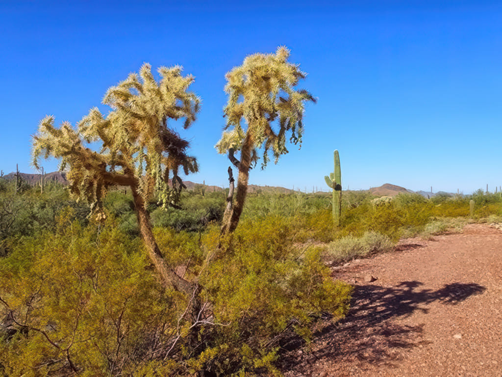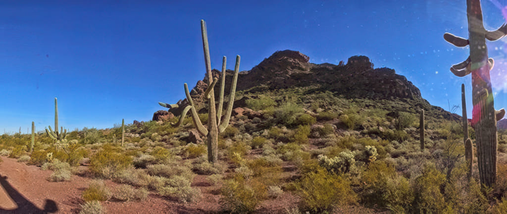 Der Tag begann einmal mehr strahlend sonnig und es zog mich wieder auf einen kleinen Spaziergang entlang des Washes. Zu schön stehen dort die Kakteen dicht an dicht.