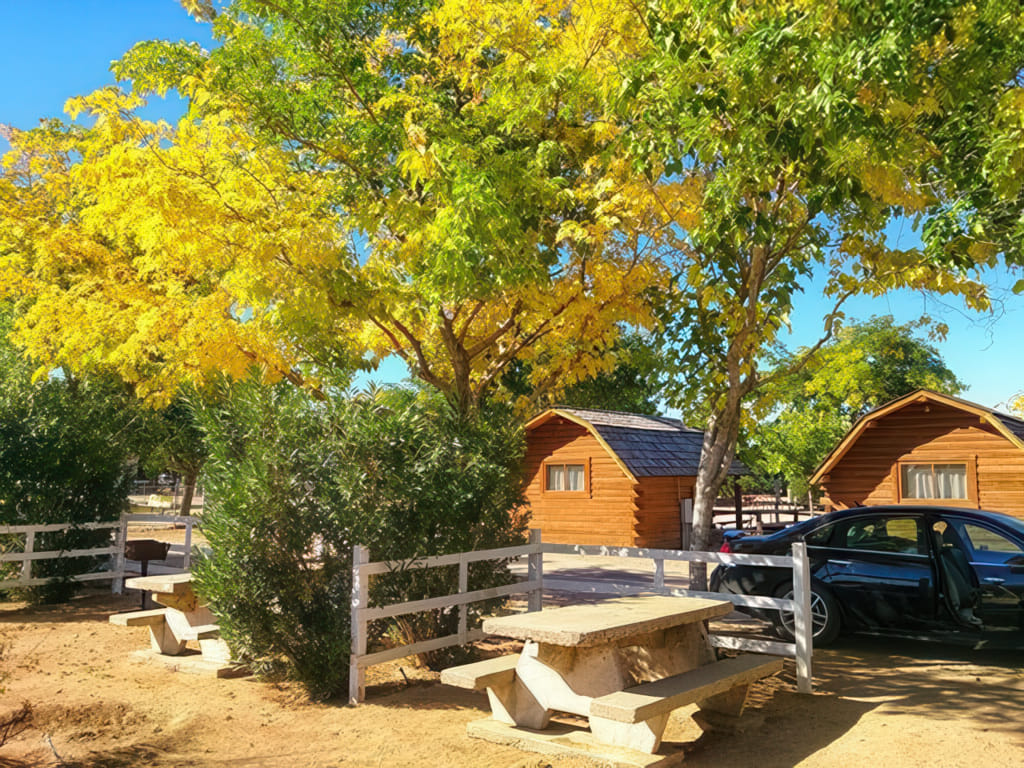 Der Campingplatz in Kingman ist sehr nett gelegen. Obwohl in der großen Stadt, ist er doch eher ruhig, die Zeltplätze sind schön eingezäunt. Nur unsere Betonsitzbank war eher ungemütlich. Man kann eben nicht alles haben.