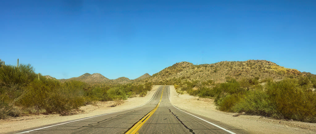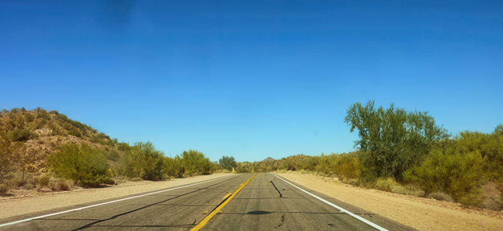 Frau TomTom hat wieder eine Abkürzung gefunden und so sind wir durch die absolute Wildnis gefahren. Sehr hübsch. Anderswo muß man Eintritt zahlen, um so hübsche Strecken fahren zu dürfen. Die Vulture Mine Road hat echt was.